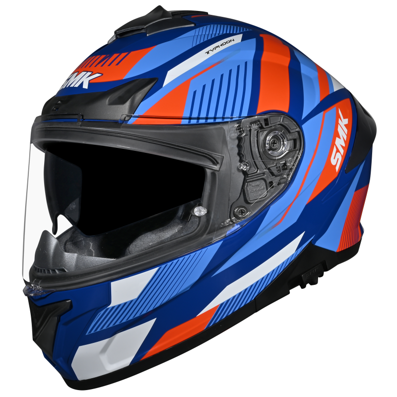 TYPHOON SPARKO is a Full-face helmet with a compact and aerodynamic shell design that appeals to sports tourers and daily commuters alike! The Typhoon range of helmets from SMK comes with industry-leading safety and comfort features.